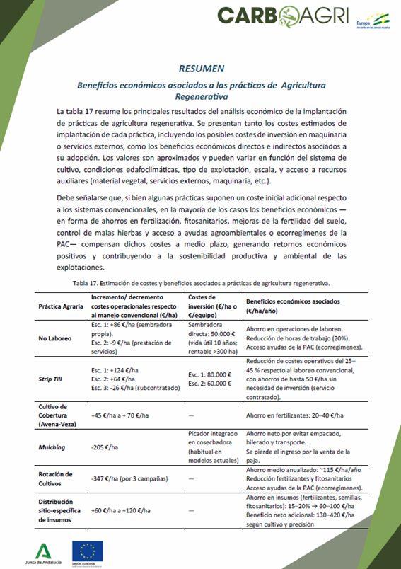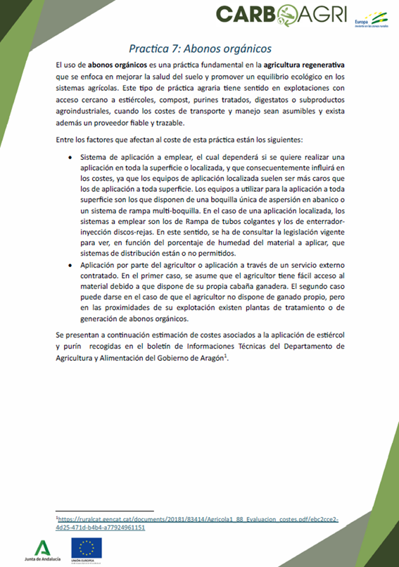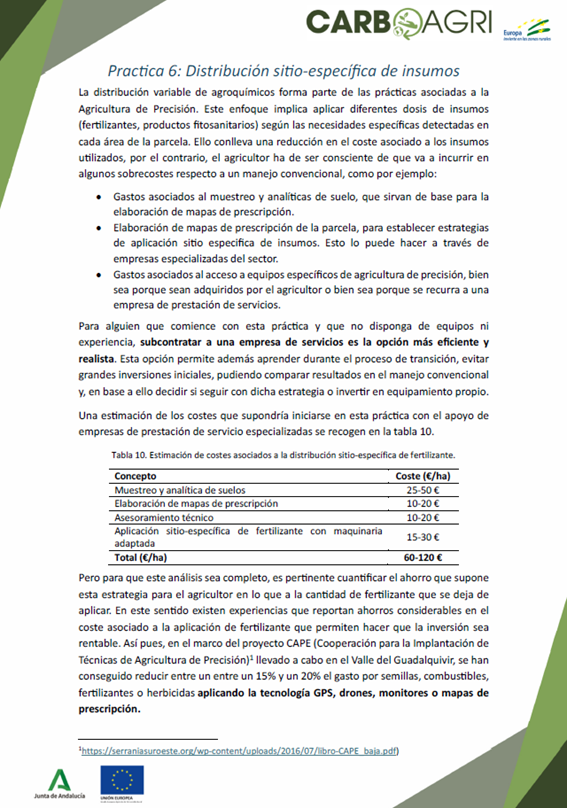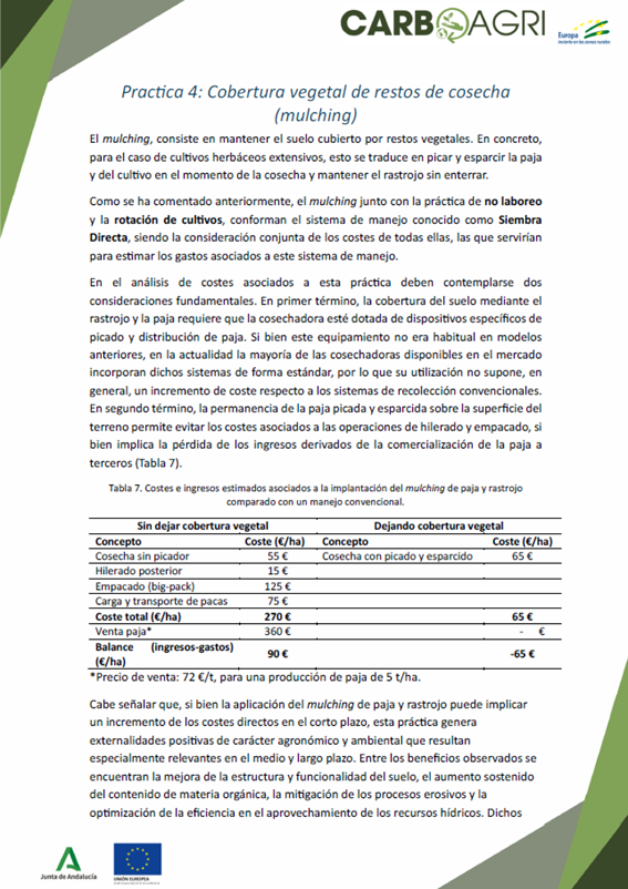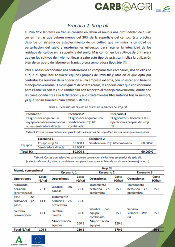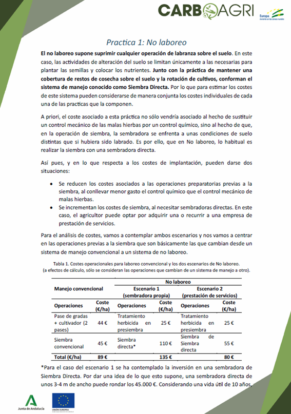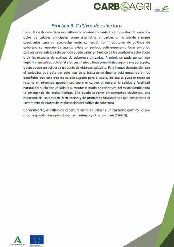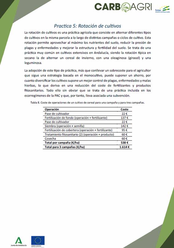 No obstante, antes de decidir qué prácticas son las más indicadas para una finca en particular es importante conocer sus beneficios, el contexto técnico en el que se implementan, qué maquinaria requiere y cuales son las principales variaciones económicas esperadas con respecto a la práctica habitual. Le recomendamos consultar los siguientes informes sobre buenas prácticas agrícolas. En ellos encontrará información útil para identificar cuál se adapta mejor a su explotación, cómo implementarla y qué beneficios económicos puede aportar: